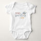 Adorable pastel whale with the words "Brand Sparkling New" adorn this cute baby bodysuit. Personalize with your details easily and quickly, simply press the customize it button. Matching items to complete your event collection are available in our Zazzle store!