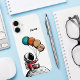 Fun Whimsical Astronaut holds Planet balloons while sitting on a cratered moon in Outer Space, Custom iphone case.