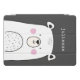 This cute and colorful iPad case features a whimsical illustration of an adorable bear in black and white. Personalize it with your name in a retro typewriter font. Great gift idea!
