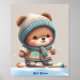 Cute Whimsical Bear Skiing Nursery Printable Poster