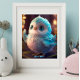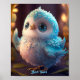 Cute Whimsical Blue Bird Glitter Feathers Nursery Poster
