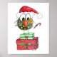 This is an original mixed media painting of a Christmas bird on a stack of gifts.