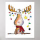 This is an original mixed media painting of a whimsical Christmas moose tangled in Christmas lights.