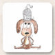 Cute Whimsical Dog with Cat on His Head Beverage Coaster