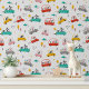 Cute Whimsical Dogs Cars Modern Kids Pattern Wallpaper