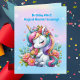 Cute Whimsical Floral Unicorn Girly Kids Birthday Card