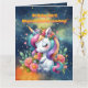 Cute Whimsical Floral Unicorn Girly Kids Birthday Card