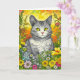Cute Whimsical Folk Art Style Cat and Flowers Card