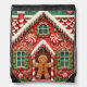 Cute, whimsical gingerbread man & house drawstring bag