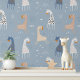 Cute Whimsical Giraffe Modern Kids Pattern Wallpaper features cute whimsical giraffe on a blue background. Perfect for kids bedrooms, nursery decor, home, office and party decor. Created by Evco Studio www.zazzle.com/store/evcostudio