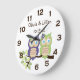 Cute Whimsical Girl Owl Twins Wall Clock - one in purple, one in spring green perfect decoration for your twin's room - personalize with your own name and date. If you would like this design on another product, or in a different color combination, please contact me through my store. If you need to move the text, or change the size, font, or color of the text, please click Customize IT.