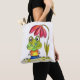 Cute Whimsical Green Frog Under a Red Flower Tote Bag
