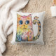 Cute Whimsical Happy Cat with Bird Throw Pillow