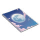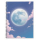 A charming, whimsical illustration of a big moon gently glowing in a peaceful night sky, surrounded by pink soft clouds. Its dreamy, serene atmosphere invites you to relax and imagine endless possibilities under the stars.
