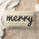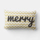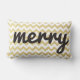 Cute Whimsical Merry Script Gold Chevron Holiday Lumbar Pillow
