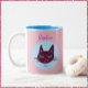 Cute Whimsical Pink and Blue Purring Cat Two-Tone Coffee Mug