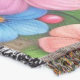 A quality printed throw has its advantages. This is a much finer weave throw than its loopier cousins, and though lighter, it is worth the investment for custom room accessorizing. The back is much prettier than the typical brown, and the fringe on the long sides very vivid, the selvage nicely done. Before photographing, I washed the throw in cold water, delicate, with a thicker woven throw the same size. On tumble dry low, this throw was dry in half the time as the other. This is a very practical quality if you use throws for furniture covers or to wrap up in frequently. The sleekness of the fabric makes it a great layer for accenting or protecting without the feeling of sitting on too much stuff. Perfect for napping or when you feel a light chill coming on. The color printing is beautiful and on this fabric, matched the design and color of my Photoshop image. This is an advantage for blending room fabrics and colors. The fringe on the short sides prints the colors from the design image and therefore varies from the side fringe. I streaked a white fractal line through the plaid pattern to give the illusion of weaving. This printed as crisp as an illusory thread, and put some white in the short side fringe, showing another advantage of print vs loomed- for artistic purposes, line lines, detail, and color integrity can be planned and preserved. My loomed throws have color limitations and more of a needlepoint texture. Print throws reproduce an exact image. The throw felt a little stiff straight out of the package, but this went away in the first delicate wash. Of course I searched the wash water for ink or bleeding and there was none.