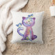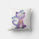 Cute Whimsical Purple Cat with Birds Throw Pillow