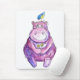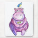 This is an original mixed media painting of a whimsical purple hippo with a bluebird on his head.