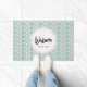 A welcome doormat with an adorable pattern. Colorful rainbows in a pink, blue and green color scheme.