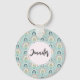 A key chain with an adorable pattern. Colorful rainbows in a pink, blue and green color scheme.
