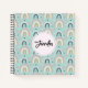 Spiral notebook with an adorable pattern. Colorful rainbows in a pink, blue and green color scheme.