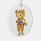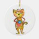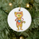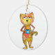 Cute Whimsical Tired Cat Drinking Coffee Ceramic Ornament