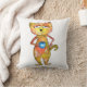 Cute Whimsical Tired Cat Drinking Coffee Throw Pillow