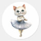 Cute white cat ballerina dancing ballet classic round sticker