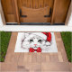 Cute White Cat Merry Christmas Doormat