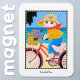 This cute magnet features a whimsical style illustration of a white cat riding a bicycle by the sea, with a little mouse in her basket. The text under the picture can be customized, so you can add your own name or title. Personalized magnets make great gifts for birthdays, anniversaries, Christmas holidays and more!