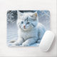 Pretty ai generated winter scene with a sweet white fluffy kitten playing in the snow.