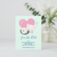 Save the date party postcard with an adorable graphic illustration. A white kitty cat with a cute paw print image on her fur. Sleeping peacefully. A big pink heart behind her and some little stars too. Mint green background.