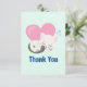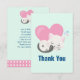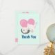 Flat thank You card with an adorable graphic illustration. A white kitty cat with a cute paw print image on her fur. Sleeping peacefully. A big pink heart behind her and some little stars too. Mint green background.
