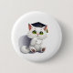 Cute white cat wearing a graduation cap button