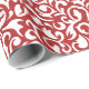 Cute White Dark Red Damask Floral Pattern Wrapping Paper