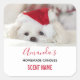 Soap or candle sticker personalized with your details and scent name. Designed with an adorable photo of a cute white doggy wearing a red christmas hat.