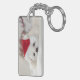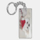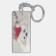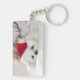 Keychain with an adorable photo of a cute white doggy wearing a red christmas hat.