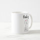 This design features a trendy, keepsake, a personalized mug template, with a white poodle dog, great for pet lovers, with custom calligraphy script, a simple hand-drawn puppy art.