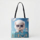 Cute White Dog Travel Suitcase Personalized Name Tote Bag features a cute white puppy dog wearing sunglasses on a retro suitcase ready to travel with your personalized name in modern white calligraphy script typography. Perfect gift for girls for birthday, Christmas and holidays or for a mom-to-be for a baby shower. Designed by ©Evco Studio www.zazzle.com/store/evcostudio