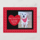 Cute White Dog with Funny Ears Red hearts Black Postcard