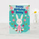 Cute white girl rabbit with daisies illustration card. This cute and colorful birthday card is a great way to make a special day memorable for your daughter special day. There is a cute poem inside that is editable and can be replaced with your own.