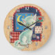 Cute White Kitten and Patchwork Large Clock