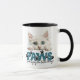 This mug has a cute image combined with an inspiring message. An adorable blue eyed white kitten peeks over a ledge. The text below says "PAWS and enjoy the little things" with paw prints all over it. The image is printed twice, with your name, monogram, or other custom text at the middle.