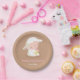 A cute white baby lamb seated on the ground while holding on to a yellow milk bottle. This paper plate is perfect for the lamb themed baby shower. Personalize with your party message. Light texture brown background to simulate kraft paper.