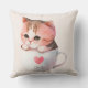 Cute White-Pink Cat in a Tea Cup (2) Throw Pillow