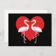 Cute White Pink Flamingos with Red Heart Holiday Postcard