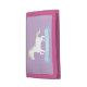 A cute white magical unicorn with pastel red, blue and yellow mane for the little one! Perfect for little girls who love unicorns! Personalize with girl's name on the blue banner with tiny hearts! Purple background can be changed.