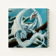 A beautiful small white winter dragon with shimmering scales and bright glowing eyes perches gracefully on a snow-covered pine branch. Surrounded by frosty evergreen needles and a cool winter sky, this enchanting fantasy painting captures the magical spirit of a dragon in a peaceful snowy forest. Perfect for dragon lovers, fantasy art fans, and anyone who enjoys mystical winter scenes.