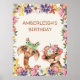 Cute Wild Animals Giraffe Tiger Girl's Birthday Poster